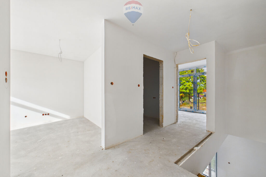 Wykonany podjazd z płyty ażurowej. Wnętrza w stanie deweloperskim